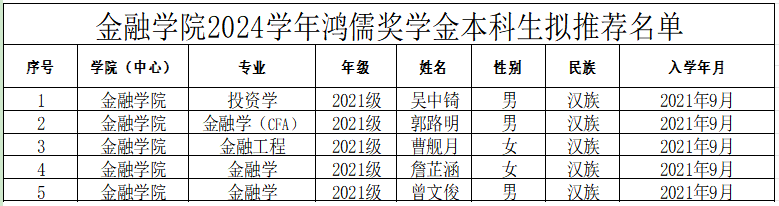 金融学院2026年接收应届本科毕业生推荐免试攻读全日制研究生拟录取名单公示