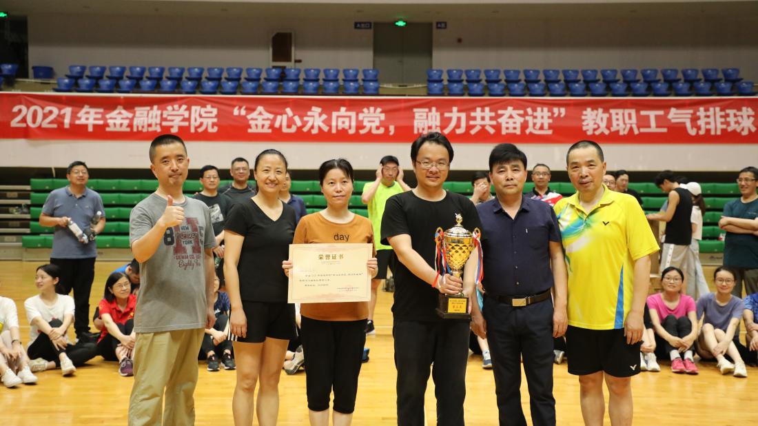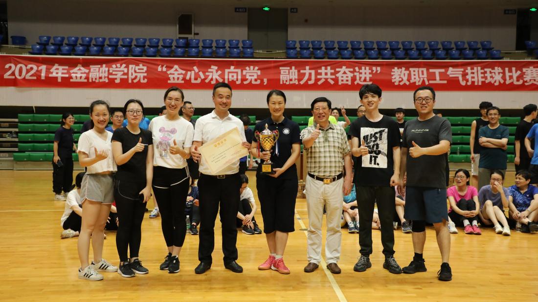 比赛结束后,党委常委、副校长姚莉、校工会常务副主席罗明晖、院党委书记汪平分别为前三名获奖队伍颁奖,并与获胜队伍合影留念。此次比赛不仅展现出金融学院教职工良好的体育竞技水平,更突显了金融学院教职工奋力拼搏、团结协作的精神风貌。老师们在运动中收获了健康、友谊、快乐,增强了教师之间的相互交流和集体的凝聚力,磨练了意志,更为学院创造和谐高效的工作氛围注入了新的活力。