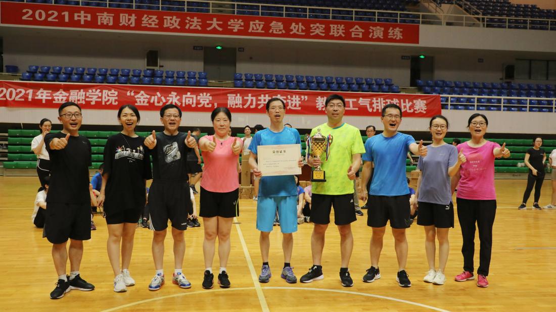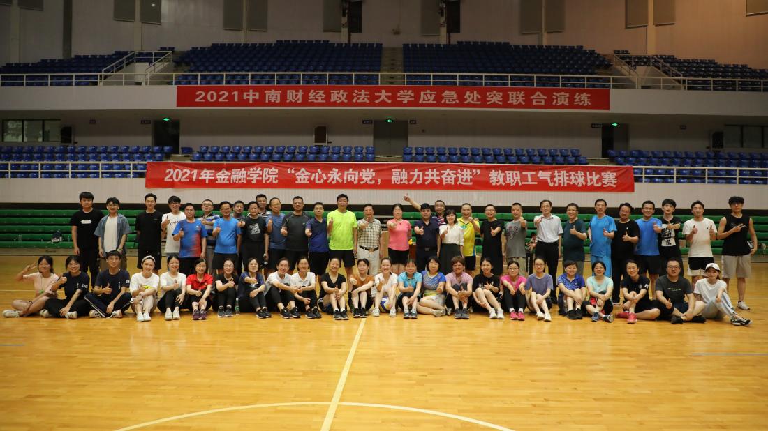 (通讯员 郭东 学生记者 芦雨珊)为庆祝中国共产党成立100周年,以党史学习教育办实事促发展,营造金融学院浓厚体育锻炼氛围,提高学院教职工身体素质,推进学院凝心聚力,中南财经政法大学金融学院6月17日晚上7点在艺体中心举办首届“金心永向党,融力共奋进”教职工气排球比赛。中南财经政法大学党委常委、副校长姚莉、校工会常务副主席罗明晖、金融学院领导班子全体成员、工会委员、8支气排球代表队及教职工啦啦队参与了本次活动。开幕式和闭幕式由金融学院党委副书记、工会主席黄小妹主持。