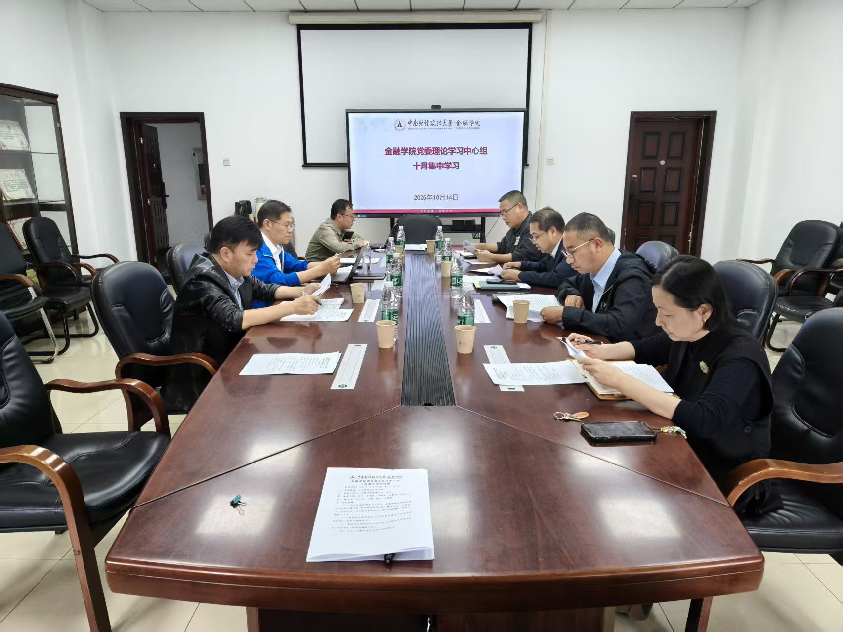 (通讯员 苏婉妹)根据学校部署安排,金融学院2025年10月14日在文泉楼南408会议室召开了党委理论学习中心组10月份集中学习研讨会。金融学院党委理论学习中心组成员参会,学院党委书记汪平主持会议。