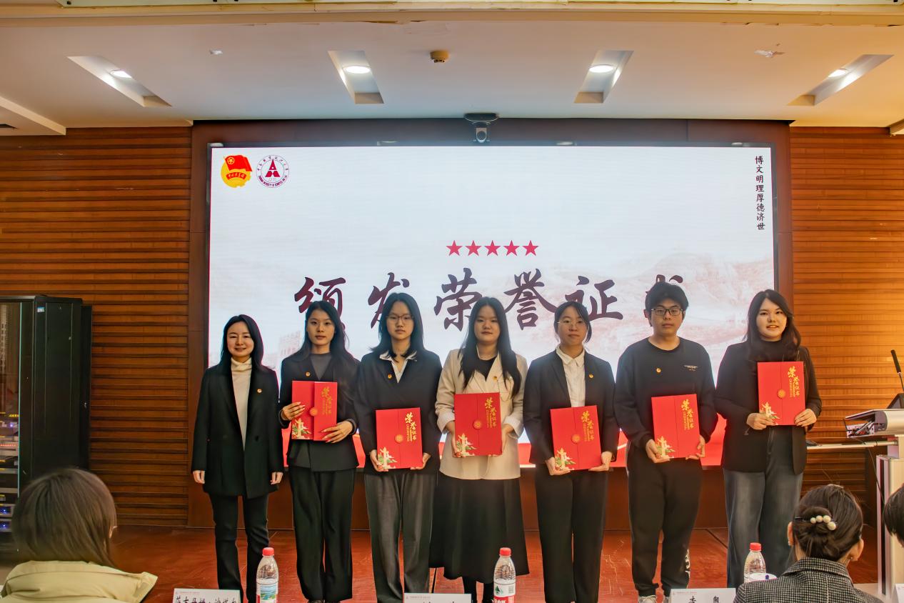 在第十八期青马工程中,涌现出一批信念坚定、表现优异的学员,他们始终牢记青年马克思主义者的使命担当,积极参与理论学习与社会实践。金融学院党委副书记刘琪为第十八期青马班优秀学员颁发荣誉证书,并向学员们的优异表现与辛勤付出表示祝贺。此次颁奖仪式既是青马班培养成果的集中展示,也为广大学员树立了学习榜样,激励学员们以更饱满的热情投身马克思主义理论的学习与实践。