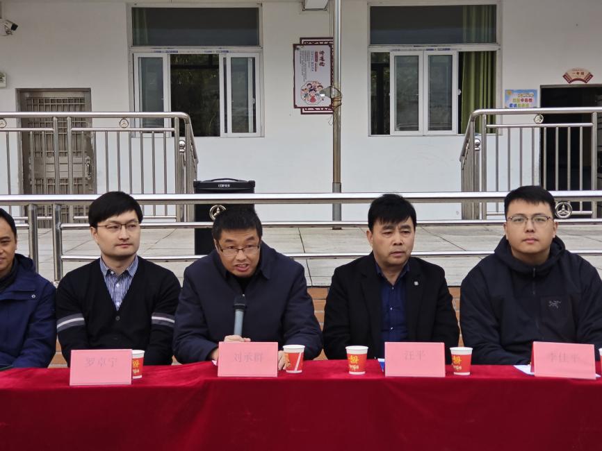 金融学院党委书记汪平、党政办主任张戈、学工办主任程明梅,平安产险深圳分公司新势力业务部销售总监李佳平、人事行政部员工服务室经理罗卓宁一行来到黄龙完小。麦市镇镇党委委员刘承群、教育总支书记胡蛟、教育总支副书记葛卫明、黄龙完小校长许琦赟、中南财经政法大学驻村工作队队长代伟、驻村队员尤军、李尚楠出席仪式,活动由黄龙完小校长许琦赟主持。
