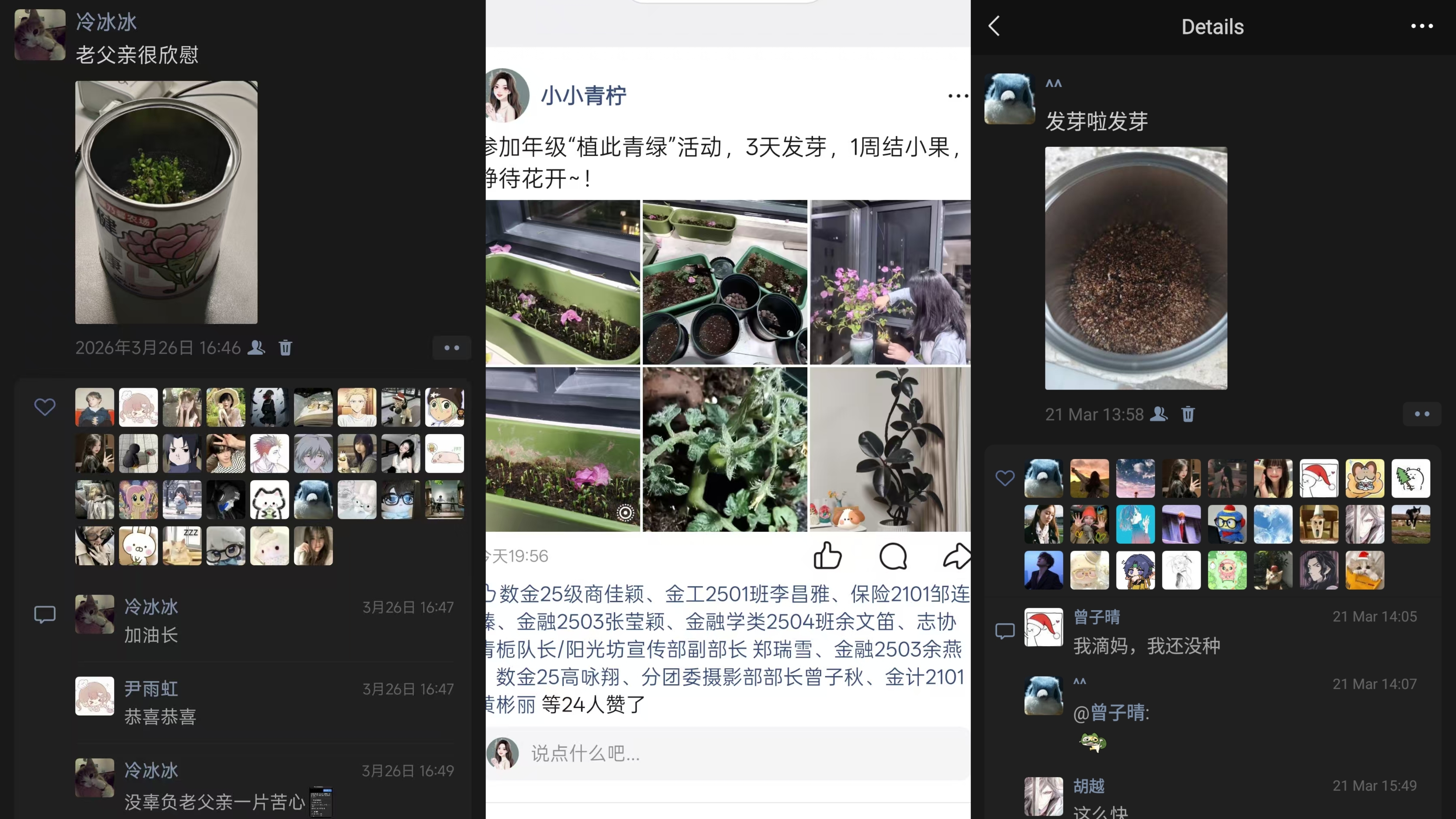 在“陪伴”中疗愈心灵,提升心理韧性:活动通过“植物疗法”这一柔性载体,为同学们提供了一个情绪宣泄与自我关怀的出口。内向的同学通过给植物起名、拍照记录,找到了与世界对话的新方式;焦虑的同学在每日观察嫩芽变化中,将注意力从学业压力转移至鲜活的生命,实现了心理能量的正向流动。