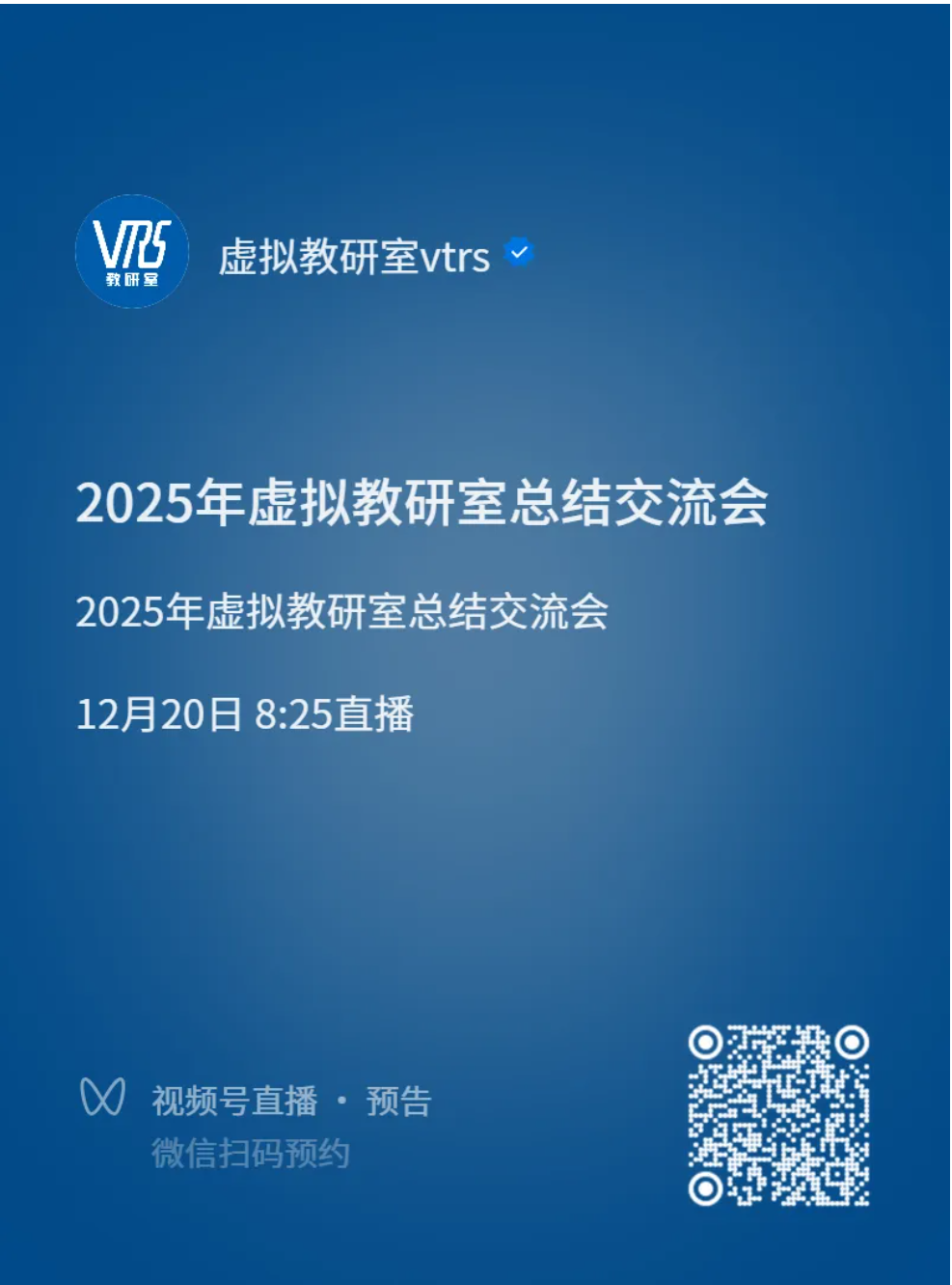 微信视频号搜索“虚拟教研室vtrs”:
