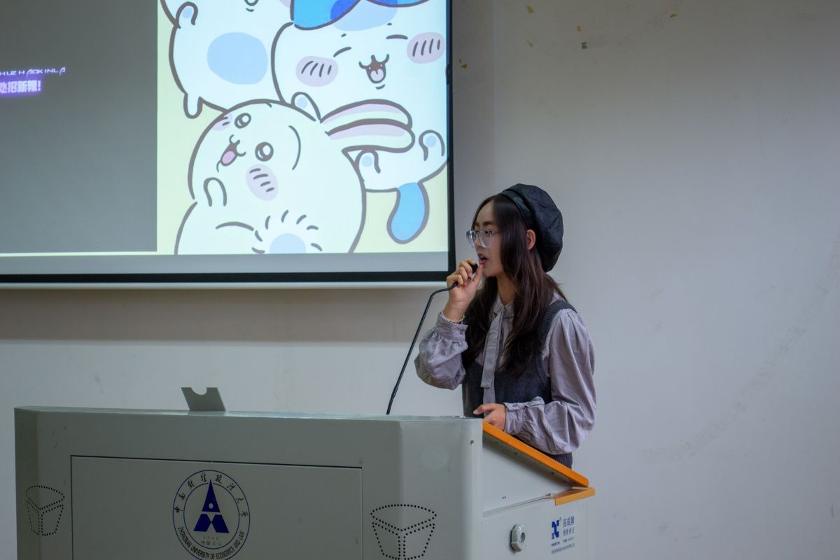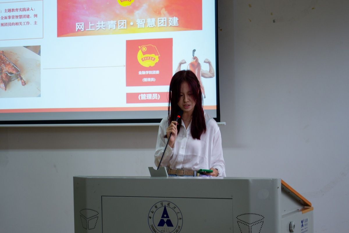 接下来,金融学院分团委进行宣讲。分团委各部门负责人通过图文并茂的PPT与生动风趣的语言介绍,呈现了分团委的特色与优势风采。其中,组织联络部选用富有趣味的音乐作为背景,宣传设计部以生动的动漫为开场,吸引了大家的目光,令人印象深刻。