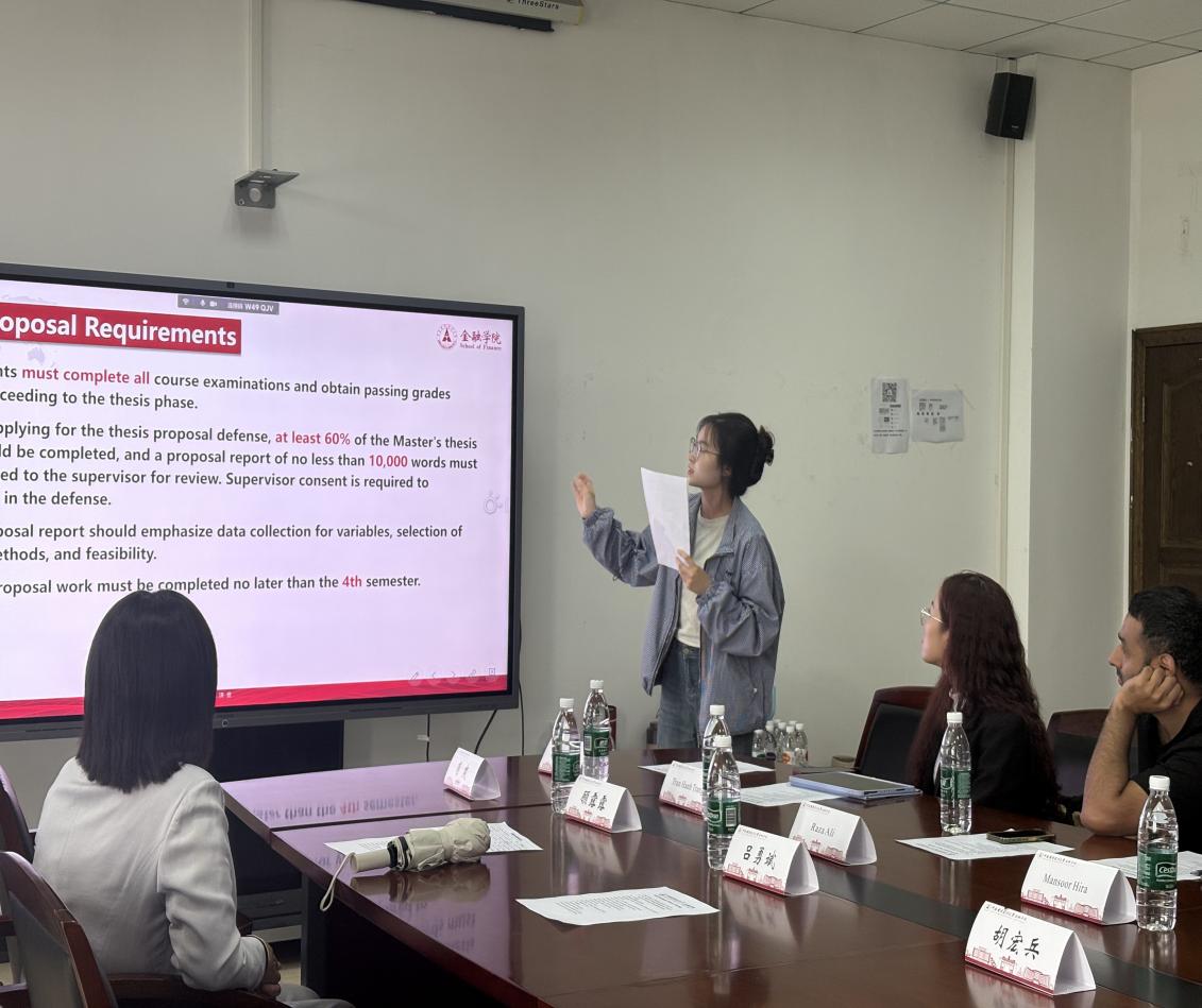 (通讯员 曹宸璐、张梓鑫)9月25日14:30,金融学院于文泉楼南207会议室举办2025级来华留学生新生导师见面会。出席本次活动的有国际交流部部长、金融学院博士生导师胡宏兵,金融学院副院长吕勇斌,金融学院留学生导师组组长顾露露,留学生导师组代表教师陈思翀、庄子罐、肖爽,金融学院博士生陈凌风,以及金融学院2025级全体来华留学生新生。
