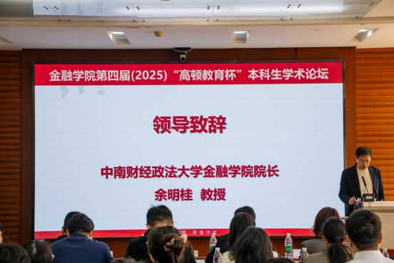 论坛伊始,金融学院院长余明桂教授与上海高顿教育科技有限公司武汉分校国内升学校长叶天娥女士分别为论坛开幕致辞。