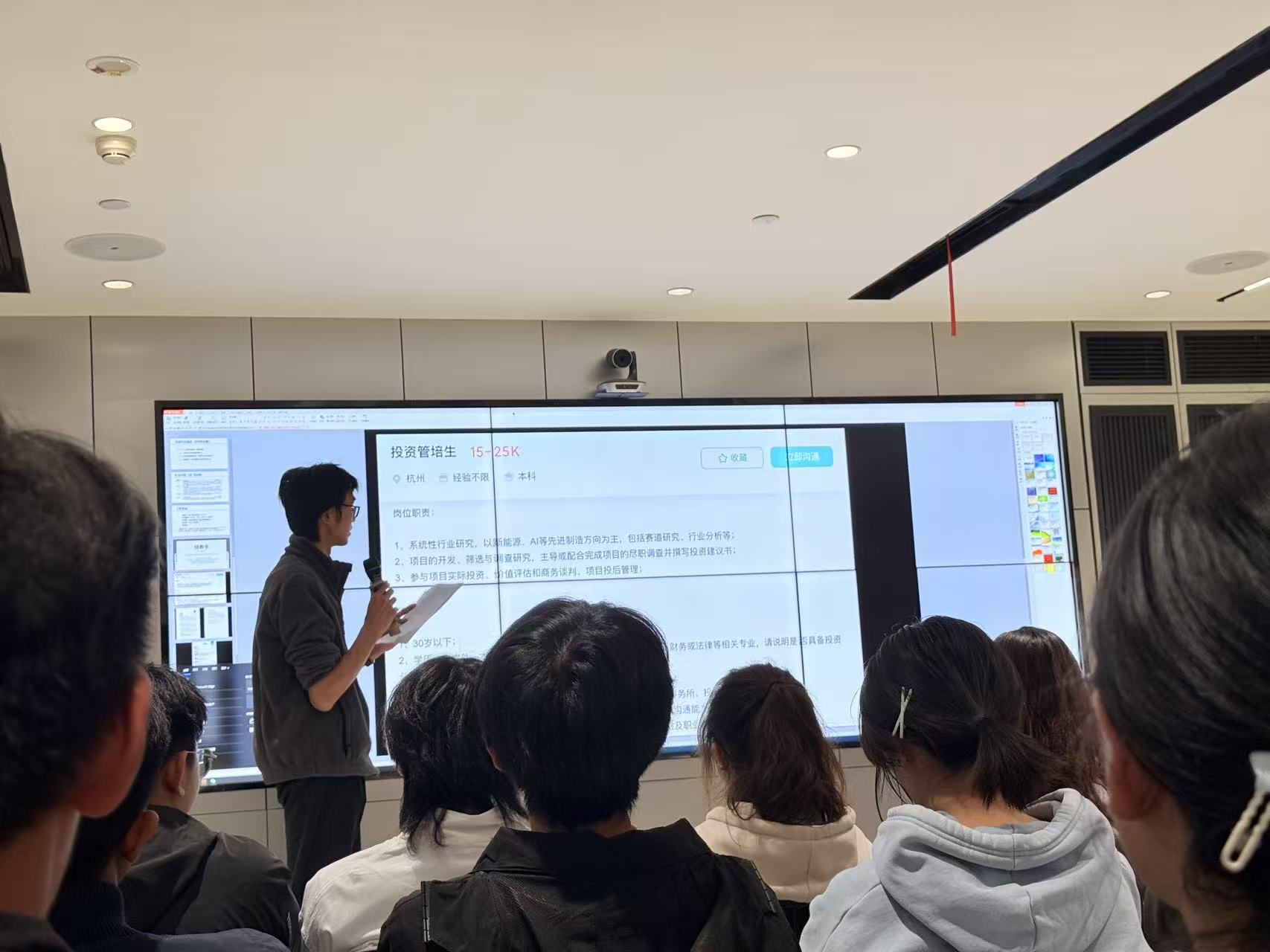 项目负责人阐述了与学院合作的意义和目标,并且阐明该实习基地将为学院的学生提供更广阔的实习平台,提高学生的实践能力和就业竞争力,同时也为中信证券培养优秀金融人才提供了有力的支持。在负责人的讲解下,同学们了解到了一些基本的概念以及行业的发展历史,对于金融专业有了初步概念。之后基地为同学们安排了一场讲座,讲座分为行业介绍以及简历编写两大部分。