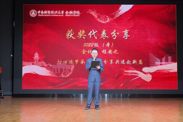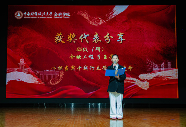 Yuan Lujie, recipient of the "Unity in Finance" award, shared her experience leading the Graduate Online Publicity Department of the School of Finance.She oversaw event planning, material collection and editing, and official article production, working behind the scenes to unite the college, convey warmth, and tell the stories of ZUEL finance students.