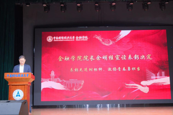 Dean Yu Minggui of the School of Finance read out the commendation decision and encouraged finance students to bravely shoulder the mission of the times and strive for new achievements.